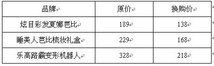活动内容:5/30~6/1,凡在童装童玩区随意消费之顾客均可以低价超值换购指定款儿童玩具。