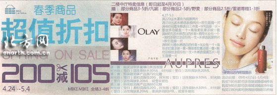 北方网时尚讯:津汇最新优惠信息——春季商品超值折扣满200减105(4.24-5.4)