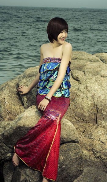 北方网时尚频道记者:作为一名专业的游泳运动员,觉得自己在这次美人鱼大赛中的最大优势是什么? 王萌:优势啊,还是游泳吧。
