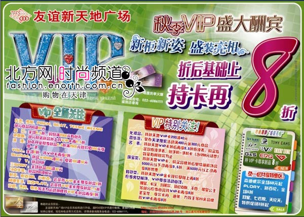 友谊新天地广场秋季VIP盛大酬宾,折后基础上持卡再享8折,还有赠礼+提货单