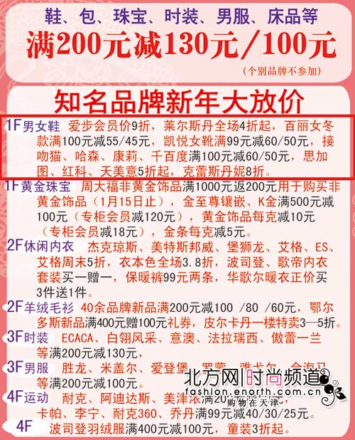 大众款式男女鞋,小编推荐两家大型商场的整体促销活动: