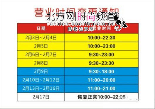 春节期间津城商场购物推荐及营业时间