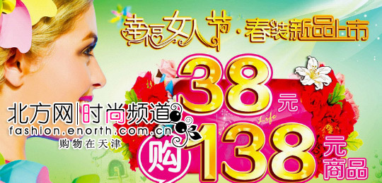 友谊新天地广场“幸福女人节”春装新品上市,38元购138元商品。