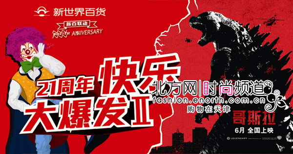 快乐大爆发-新百集团21周年庆,新世界百货全馆满99减60限时升级满99减70。正门户外广场集装箱特卖,拉夏贝尔女装3折,部分一口价;芭芬女鞋2-3折。一层圆形共享空间星期六集团女鞋特卖,99减60升级99减70。主题店铺LEE 3-5折,步森1-2折。