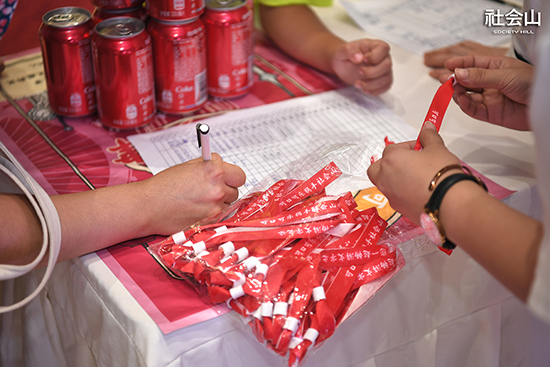 展览现场,可口可乐“在乎火车站”的别致布置吸引了众多市民的眼球,据主办方介绍,本着先到先得原则,凡在“在乎站”购买可口可乐定制罐的消费者均可免费得到一张“在乎火车票”及 “在乎明信片”或“在乎好运符”一张,社会山的业主在活动期间,则可以通过免费领取手环的方式互动体验。