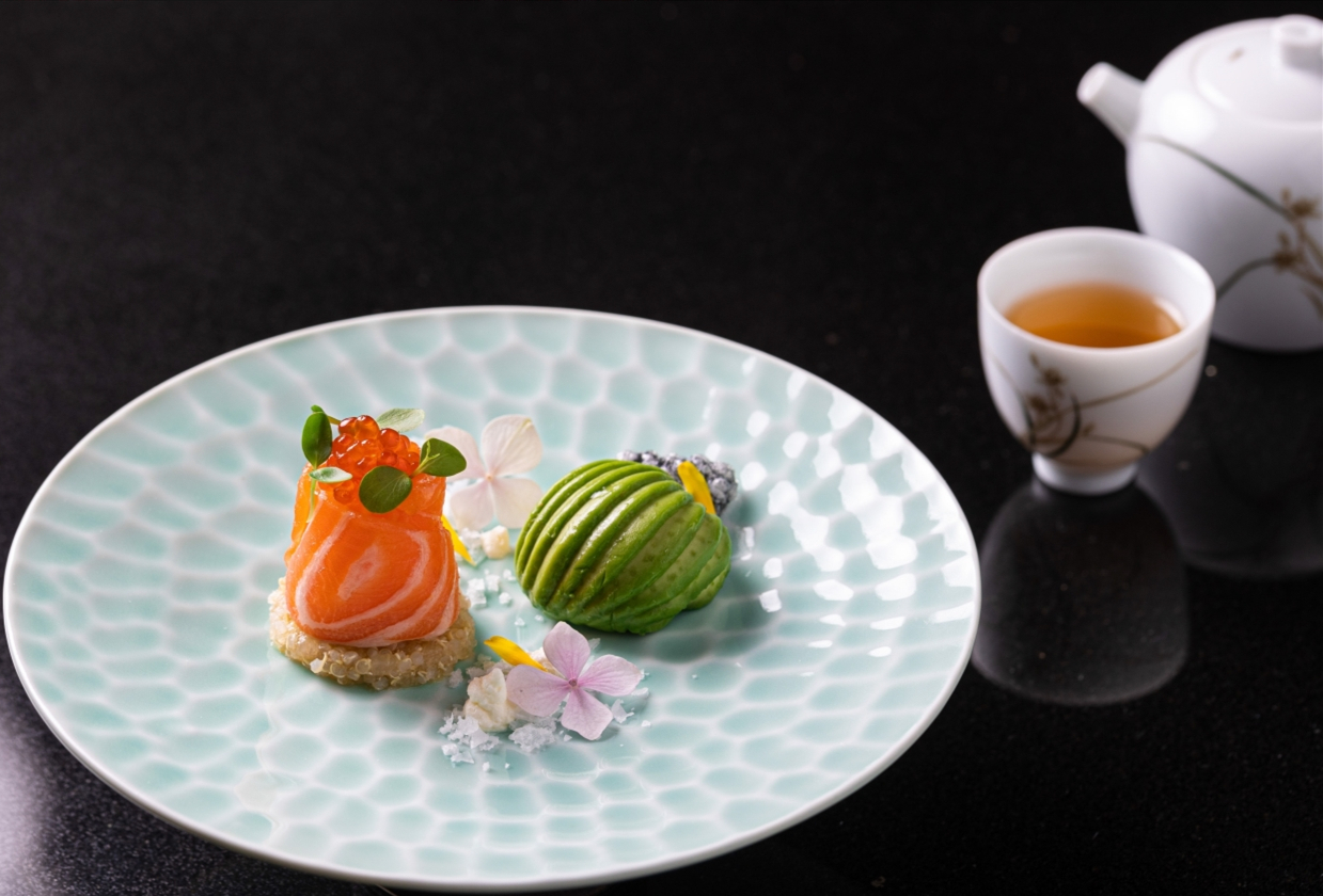 珍贵食材,发挥灵感匠心设计八道式餐茶搭配的“黑珍珠主厨周”套餐,包括秘制金酱煎脆皮澳龙搭配普洱熟茶、法罗三文鱼牛油果川味藜麦搭配正山小种红茶和翡翠荷塘金鱼饺等,主厨将与客人面对面介绍美食理念,交流厨艺心得。