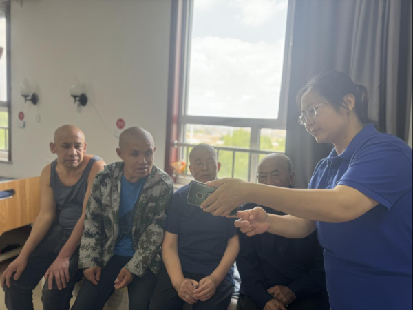 近日,任静到所负责的汾西县民政局幸福敬老院进行走访,主动关怀老年人和一些行动不便的残障人士,详细了解他们的通信需求,提供面对面的服务,为他们推荐最合适的套餐和优惠活动。在走访过程中,幸福敬老院的工作人员表示最近新进的一位身体不便的爷爷,由于是家里人给办理的手机号码,觉得套餐分钟和流量每月都使用不完,任静了解到情况后,为其现场耐心讲解套餐资费并联系营业厅给更换了合适的套餐,爷爷又让任静帮忙下载注册微信和抖音,任静下载注册好后又耐心的手把手教如何联网使用手机上的软件和功能,她的认真负责得到了敬老院工作人员的一致好评。